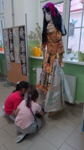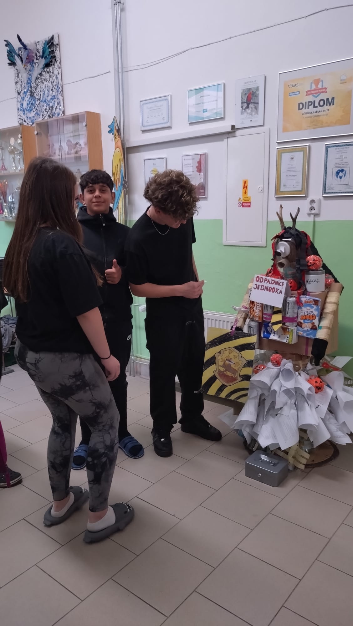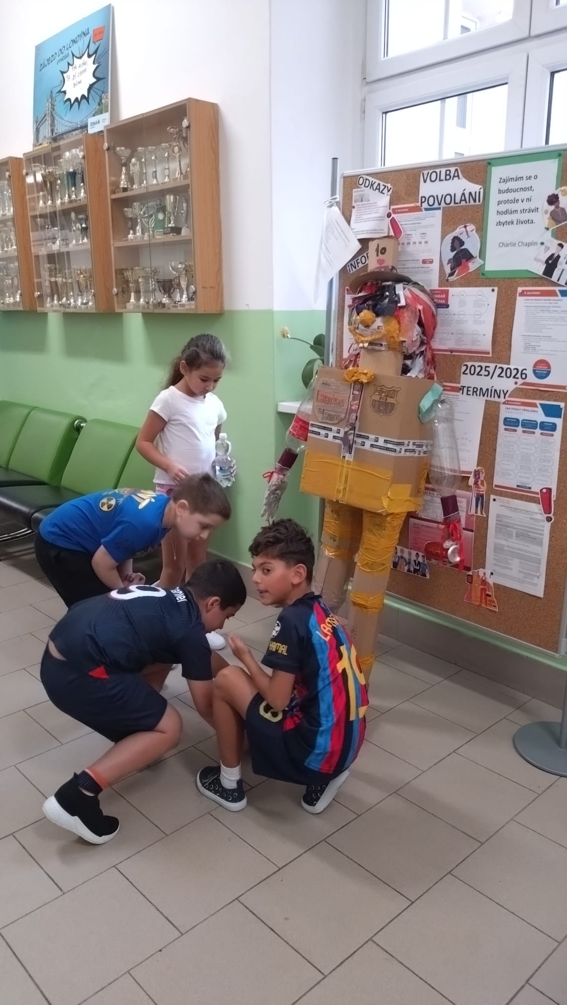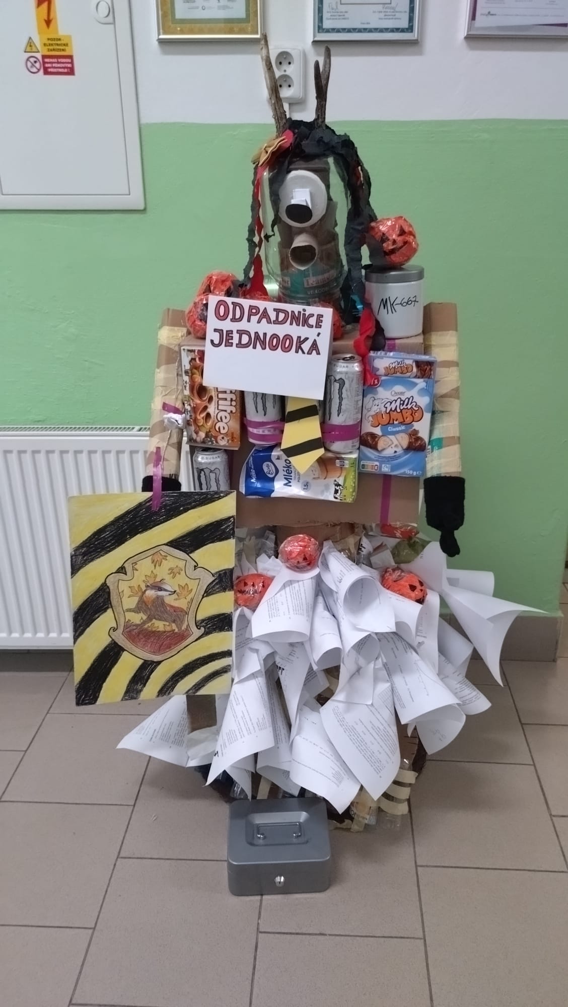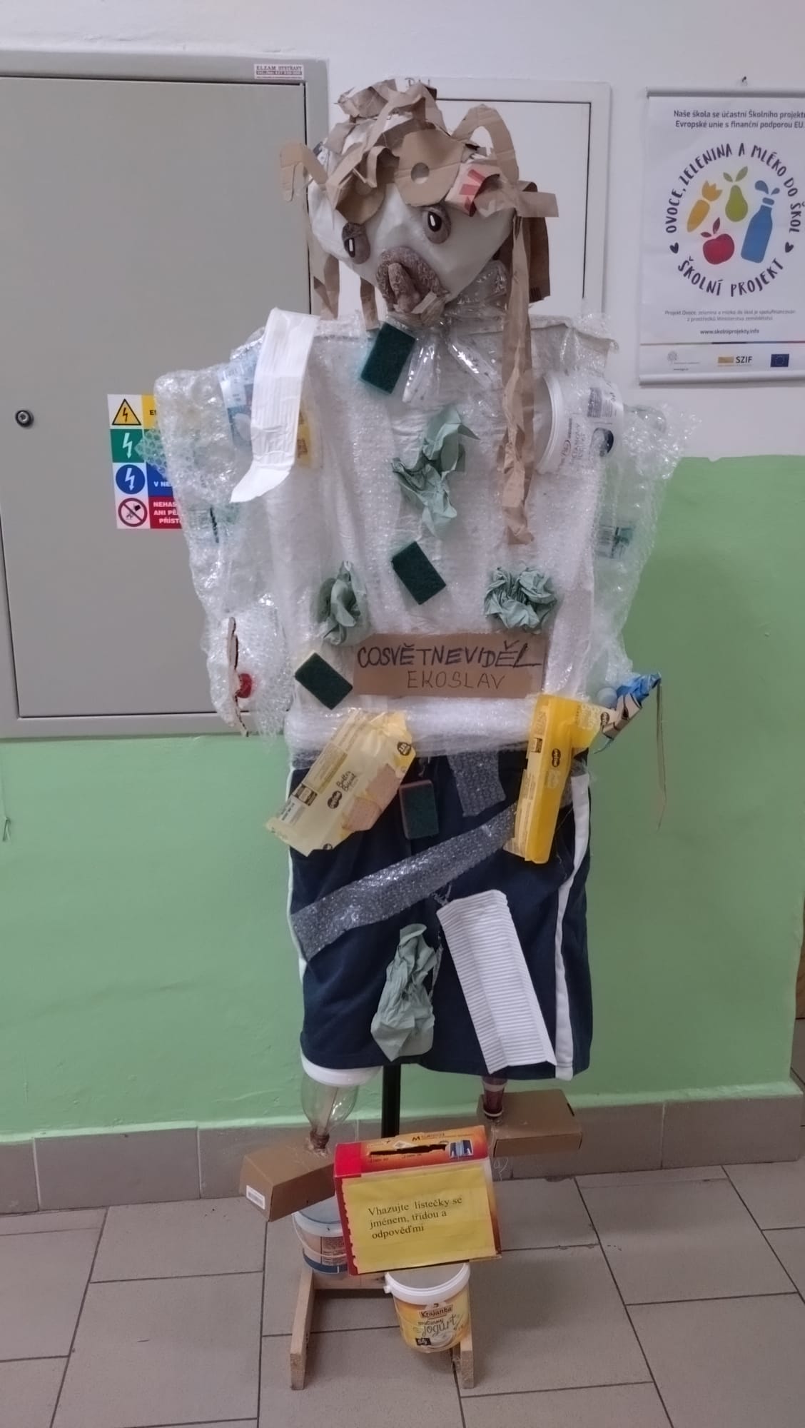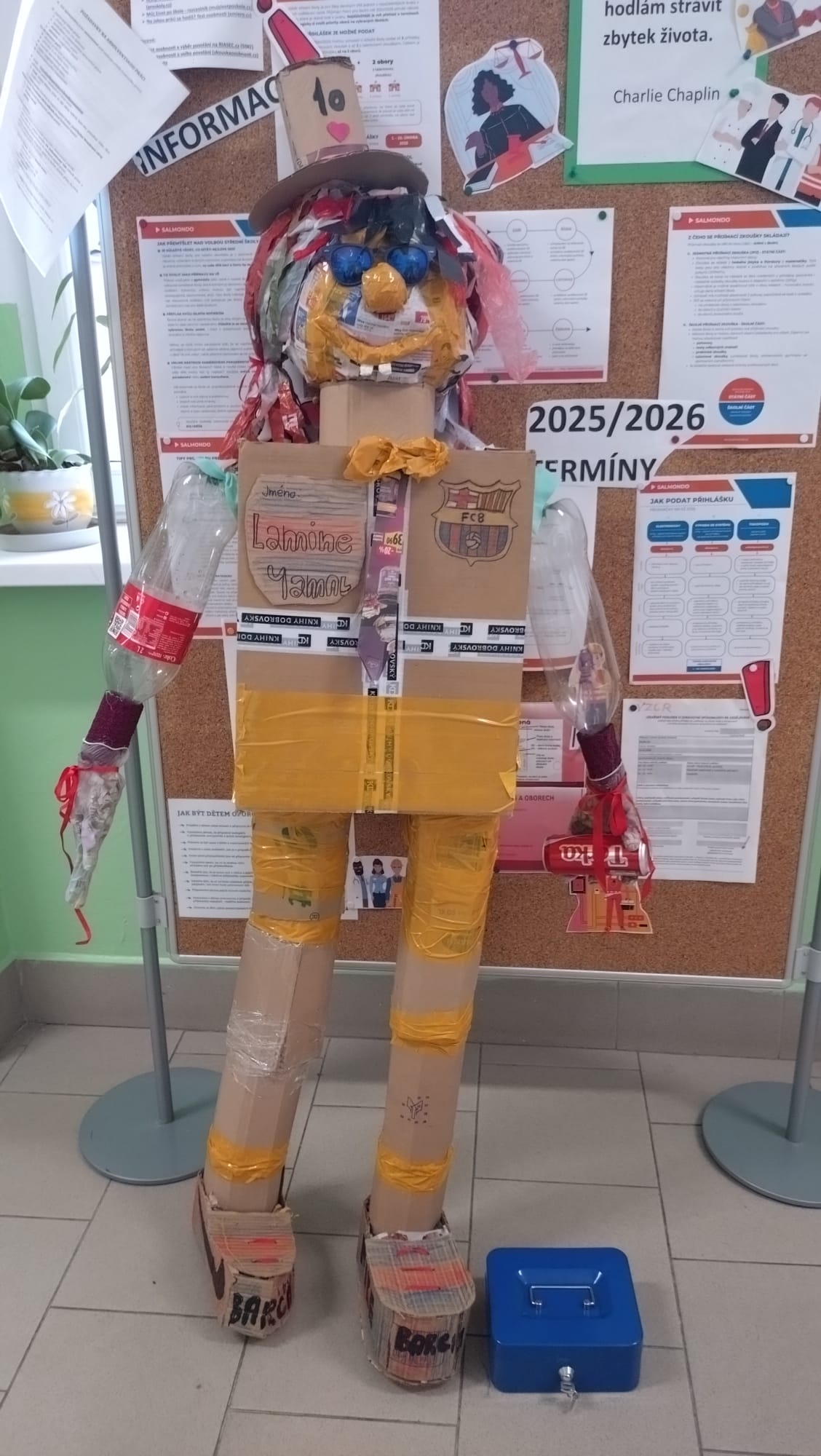 • Tvorba postav z odpadových materiálů – každá třída druhého stupně vytvořila originální postavu z plastů, papíru, hadrů a dalších zbytkových materiálů. Každá postava dostala své jméno a osobnost.