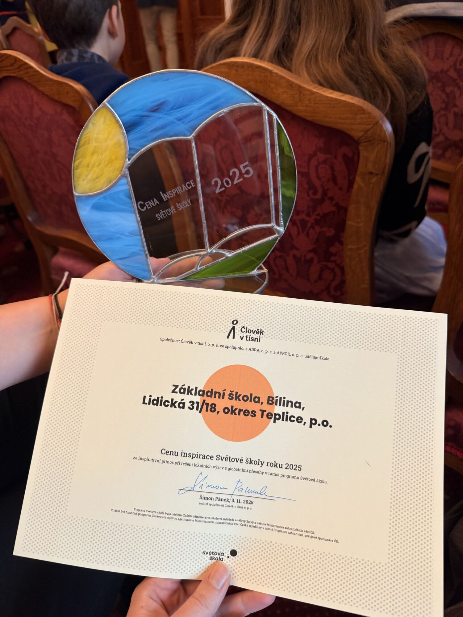 Jsme hrdí, že jsme mohli naši práci představit na půdě Senátu ČR a převzít ocenění, které potvrzuje, že naše společné úsilí má smysl a může být inspirací i pro ostatní školy.