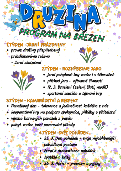 - Platba za školní družinu: 200 Kč / měsíčně
